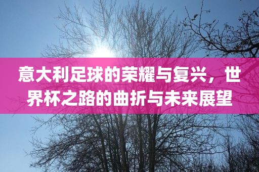 意大利足球的荣耀与复兴之路充满了曲折和挑战,凭借着坚韧不拔的精神和顽强的斗志,意大利足球正逐步走出低谷,走向复兴,展望未来,意大利足球的发展前景充满了无限的可能性,让我们一起期待意大利足球在未来的世界杯赛场上再次创造辉煌!