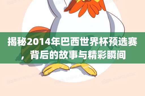 摘要:本文将带你深入了解2014年巴西世界杯预选赛背后的故事与精彩瞬间。从各支队伍的激烈角逐到球员们的出色表现,本文一一为你揭秘。预选赛中的精彩瞬间令人难忘,每个进球、每个助攻都让人热血沸腾。背后的故事更是令人感动,球员们的付出与努力,以及他们为国家荣誉而战的决心,都成为了这场比赛不可或缺的一部分。无论是胜利者的喜悦还是失败者的遗憾,都成为了世界杯预选赛永恒的记忆。
