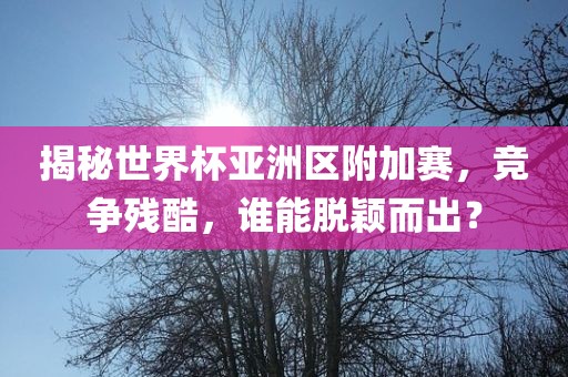 随着世界杯预选赛的激烈进行,各大洲的球队都在为了争夺世界杯的入场券而展开殊死搏斗,而在这些激烈的竞争中,亚洲区的附加赛尤为引人关注,作为自媒体作者,我将为大家深入解析世界杯亚洲区附加赛的竞争态势,看看哪些球队能够在这场残酷的竞争中脱颖而出。
