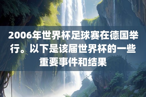 2006年世界杯足球赛在德国举行。以下是该届世界杯的一些重要事件和结果