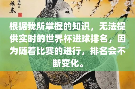 摘要:由于比赛的实时进行,无法提供准确的世界杯进球排名。随着比赛的进展,排名会不断变化,因此无法给出实时的准确信息。
