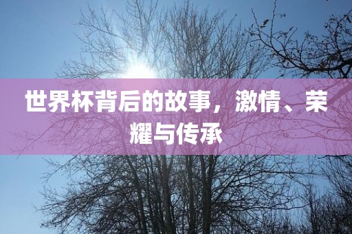 世界杯背后的故事,充满了激情、荣耀与传承。这是一场全球最盛大的体育赛事,汇聚了世界各地的顶尖球队和球员,他们为了荣誉和梦想展开激烈角逐。每一支球队、每一位球员都承载着无数人的期望和信仰,他们的每一次拼搏和奋斗都铸就了世界杯的辉煌。激情燃烧,荣耀传承,留下无数令人难忘的故事和瞬间。
