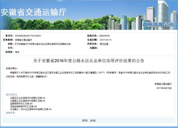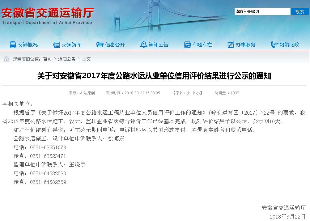 2017年企業(yè)信譽等級證明材料安徽省交通運輸廳AA級信譽等級查詢網址: