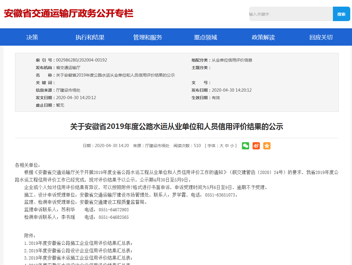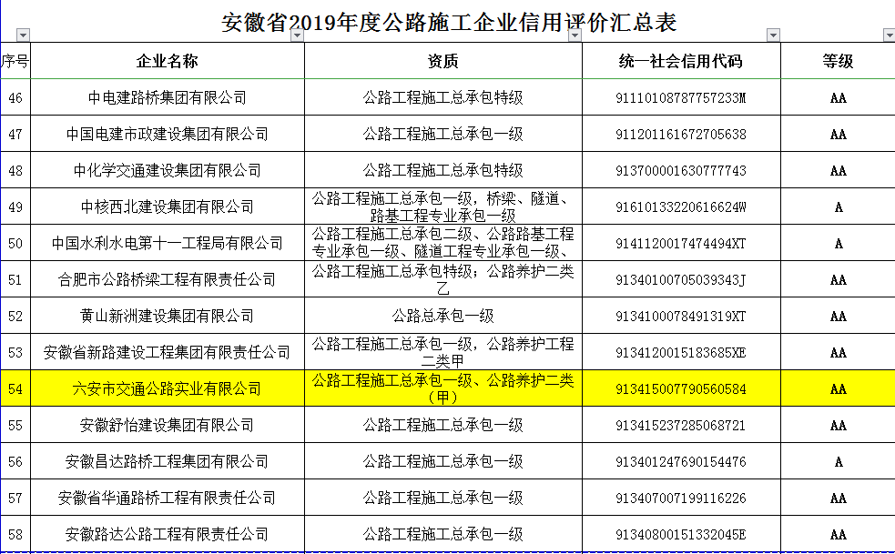 2019年企業(yè)信譽等級證明材料安徽省交通運輸廳AA級信譽等級查詢網址: