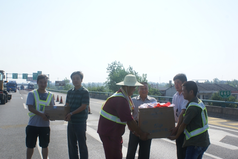 連日來,氣溫節(jié)節(jié)攀升,酷暑考驗著堅守在合六葉高速公路養(yǎng)護工程施工一線的職工。8月8日上午,公司領(lǐng)導(dǎo)及工會一行帶著毛巾、花露水、洗發(fā)液、香皂,急救藥箱及防暑降溫物品來到高速公路施工現(xiàn)場,親切慰問在烈日下仍辛勤地工作在工程施工最前線的一線職工??偨?jīng)理萬世林詢問了他們在高溫天氣下的工作、生活情況,叮囑職工在當(dāng)前持續(xù)高溫的不利條件下,安全做好工作的同時,注意休息,勞逸結(jié)合,合理調(diào)整工作作息時間,采取有效的防暑措施,安全順利地度過高溫季節(jié),保質(zhì)保量的完成施工任務(wù)。