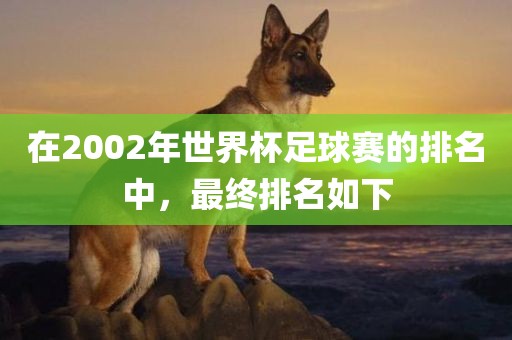 在2002年世界杯足球赛中,经过激烈的角逐,最终排名已经确定。各国队伍为了荣誉和胜利奋力拼搏,展现出精湛的球技和团队合作精神。经过层层选拔和比拼,最终排名揭晓,各国队伍的名次各有千秋。这场比赛不仅展现了足球运动员的才华和技艺,也展现了足球运动的魅力和激情。