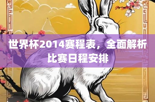 摘要:世界杯足球赛2014赛程表已经公布,比赛日程安排紧密且充满看点。本次世界杯将分为小组赛和淘汰赛两个阶段,小组赛阶段从XXXX年XX月XX日开始至XX月XX日结束,期间将进行多场精彩对决。淘汰赛阶段则从XX月XX日开始,各支球队将展开激烈角逐,争夺冠军荣誉。本次世界杯比赛日程安排丰富多样,球迷们可以尽情享受这场足球盛宴。