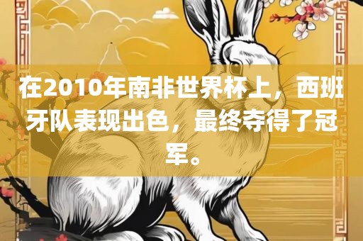 在2010年南非世界杯上,西班牙队表现出色,最终夺得了冠军。